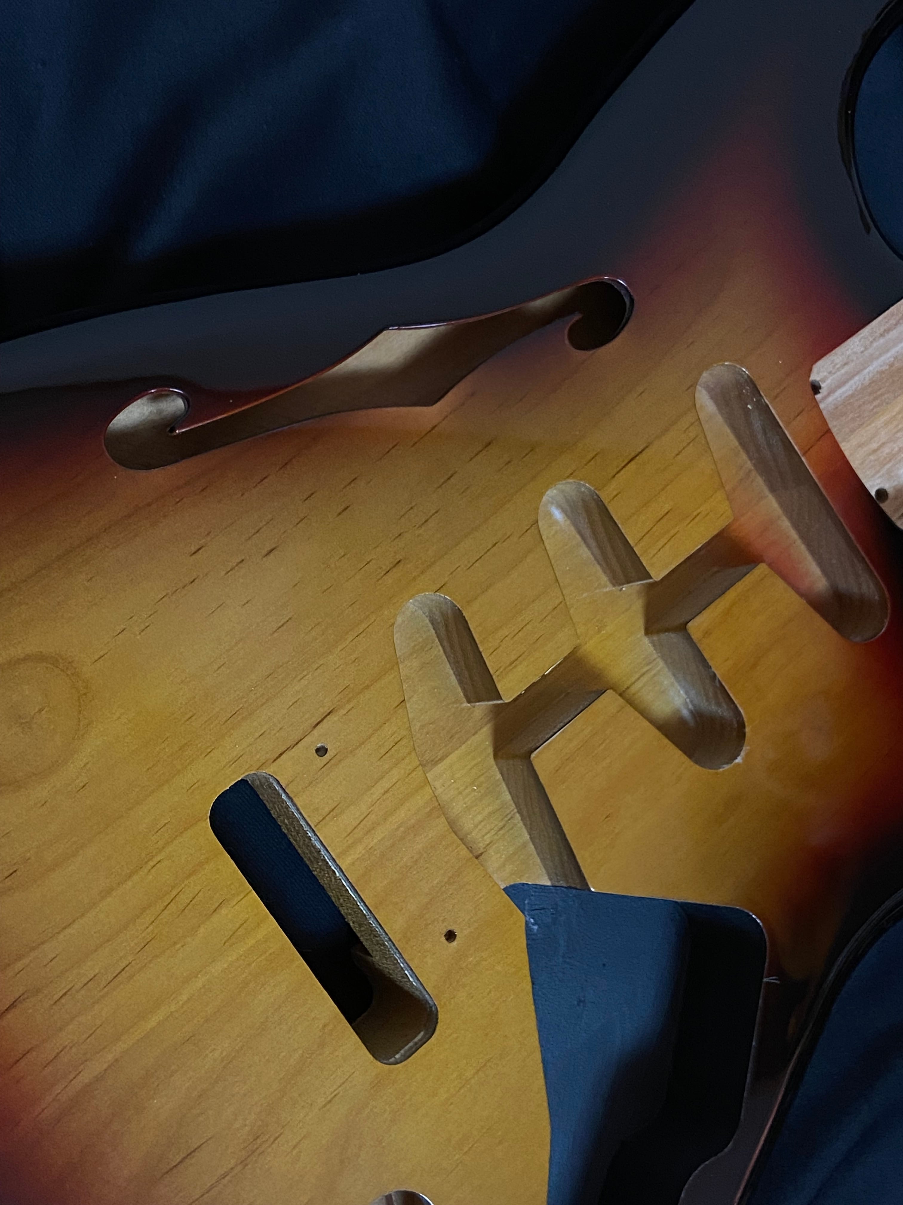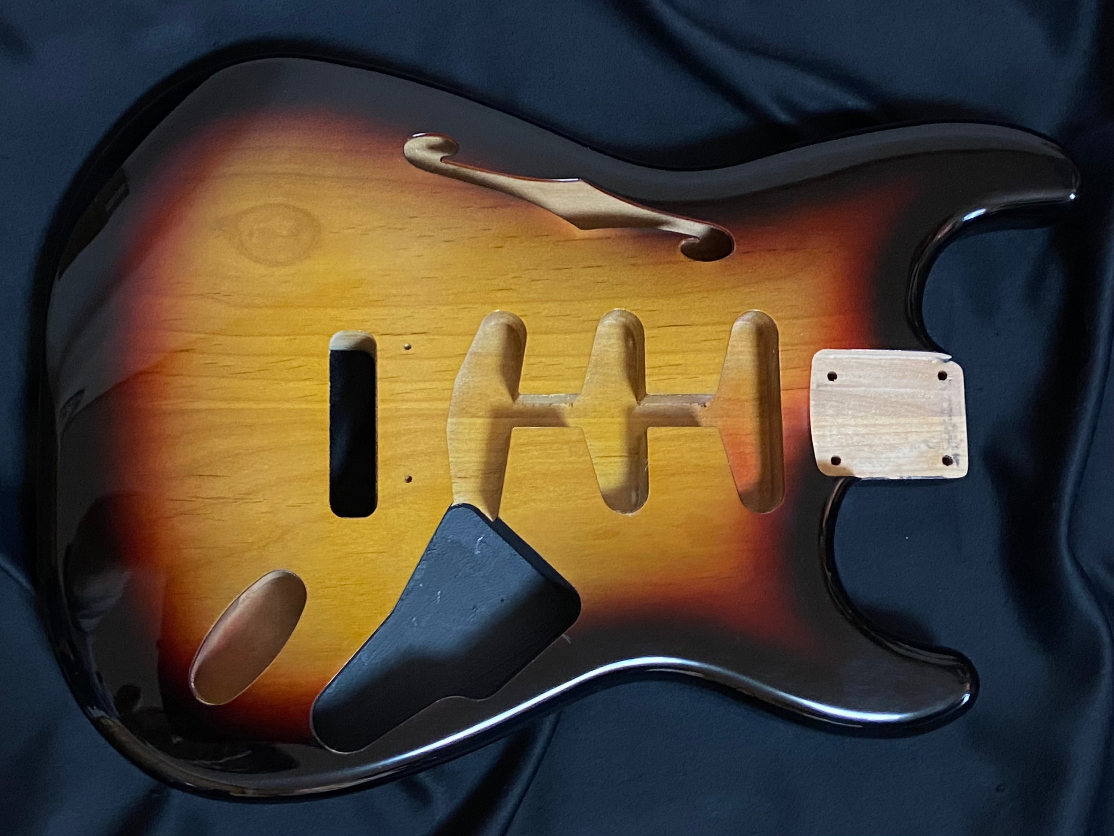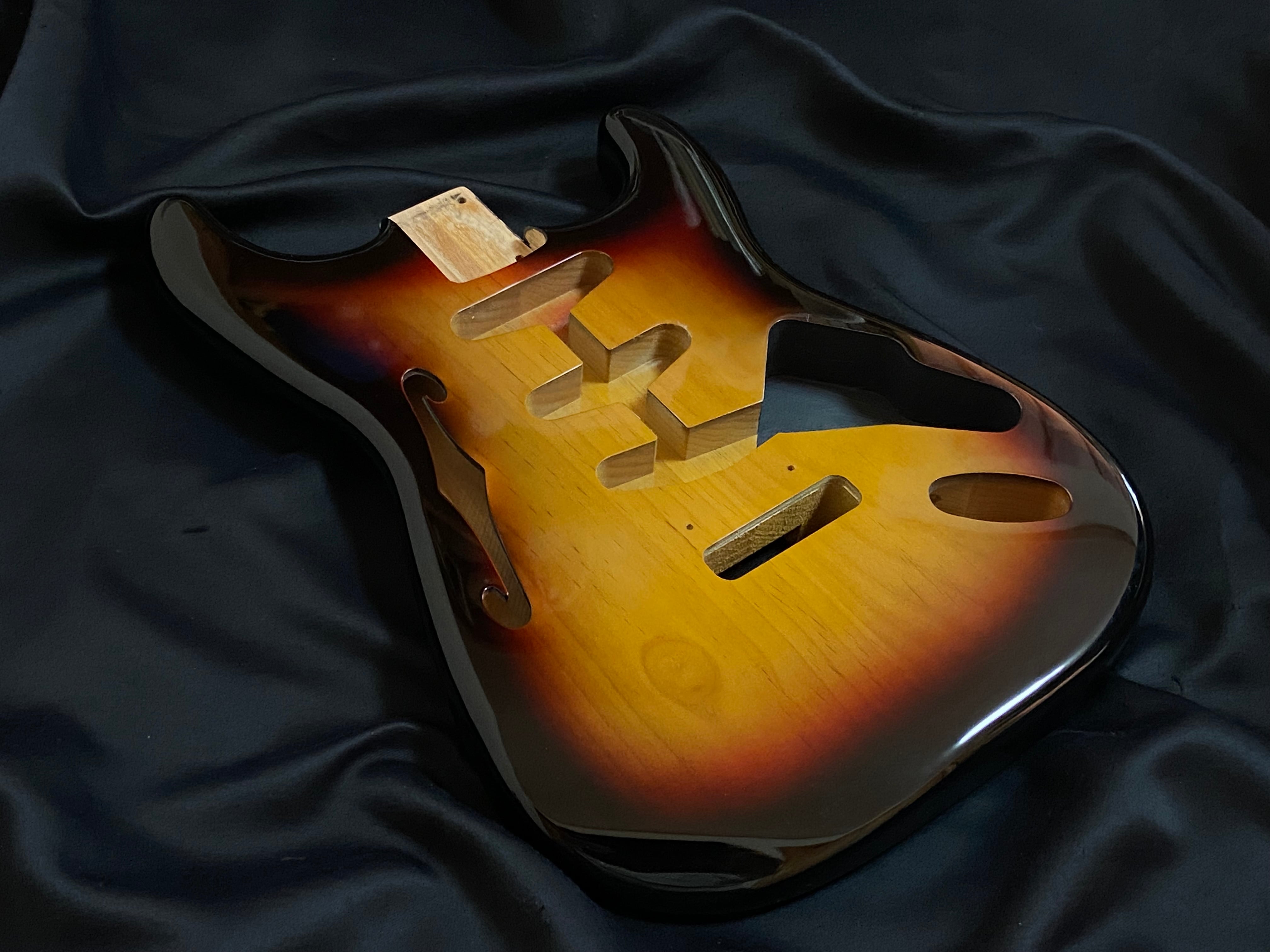 ストラトキャスターセミホロウボディ(No4)サンバースト ニトロセルロースラッカー